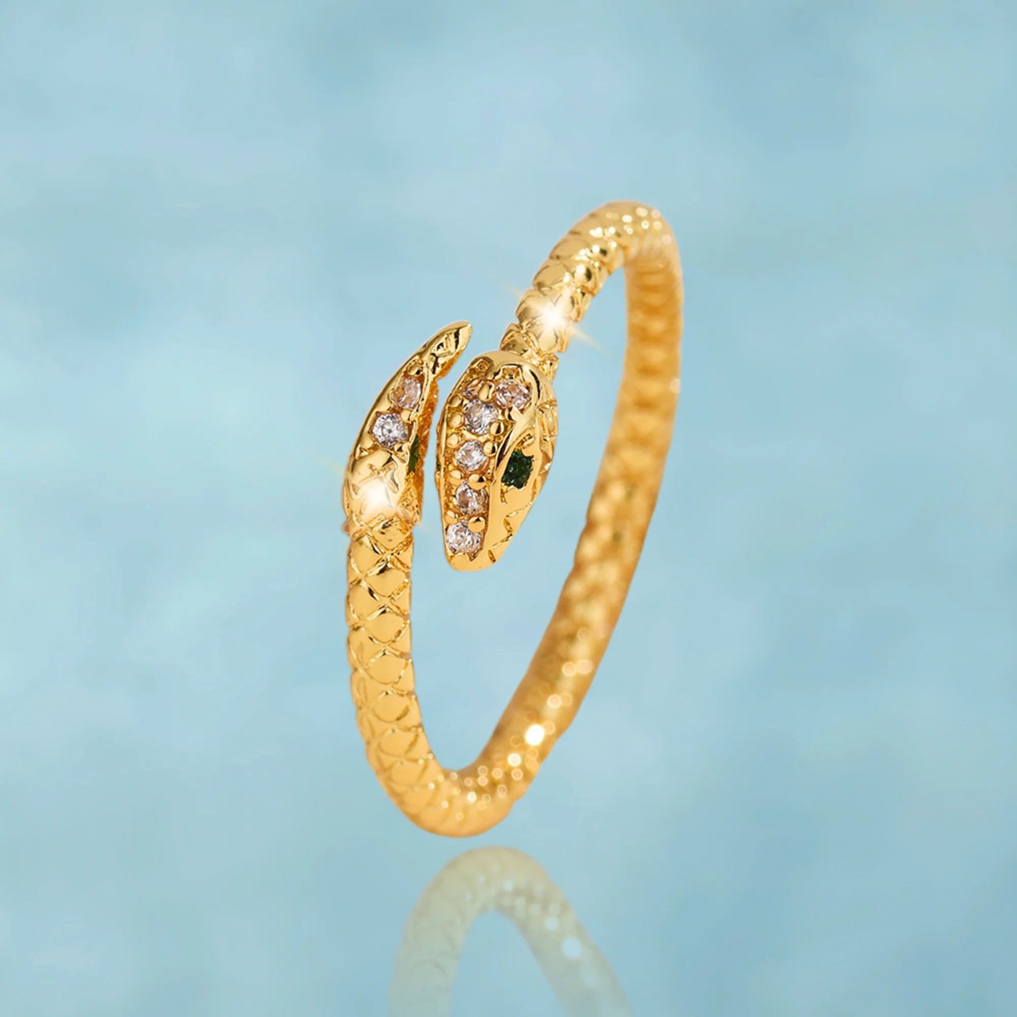 El Anillo Serpiente Oro 18K representa transformación, poder y visión. Su forma serpenteante se adapta a tu dedo con elegancia y flow.