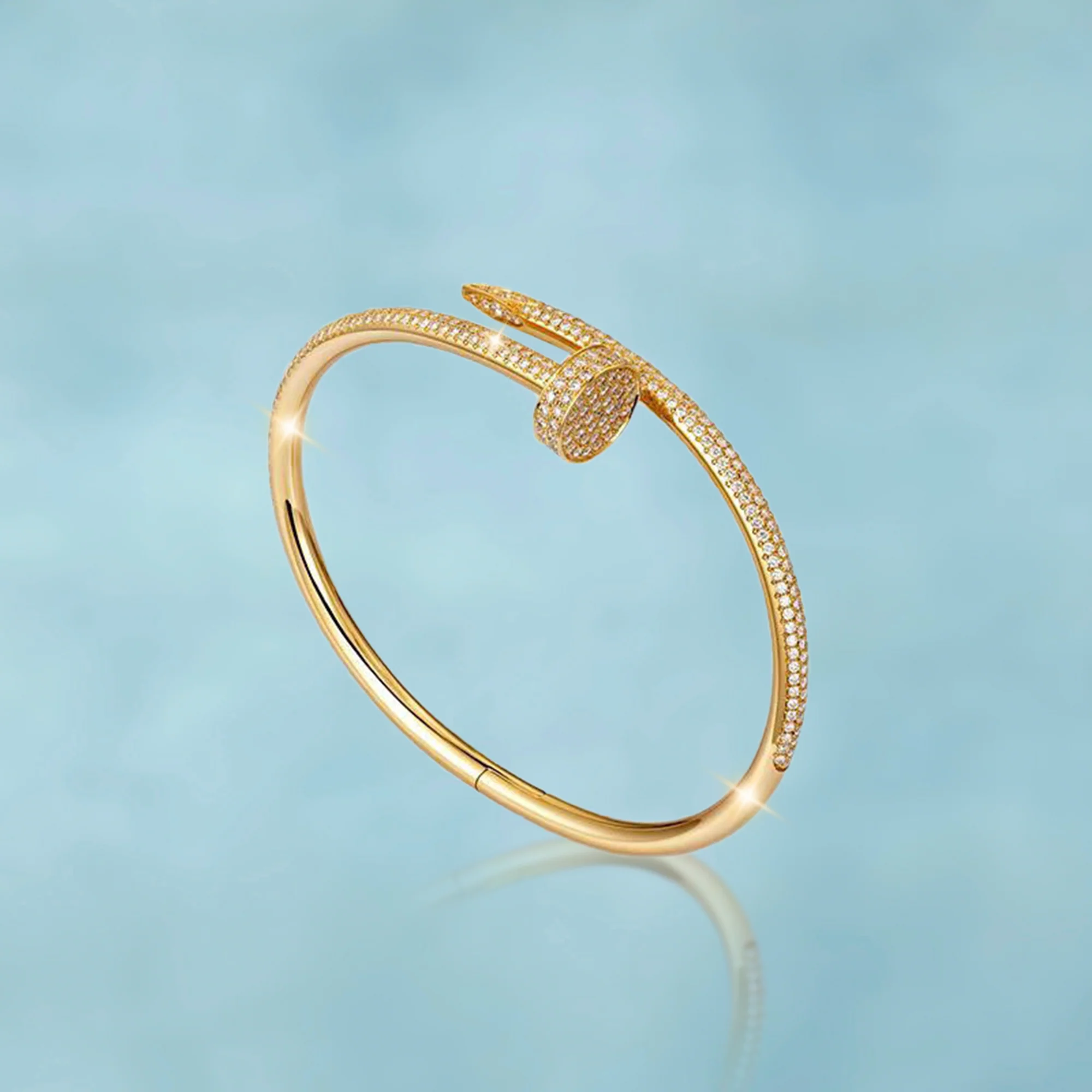 El Brazalete Clavo Ice Oro 18K reinventa el diseño clásico en forma de clavo con un baño en oro 18K y circonitas brillantes. Una pieza minimalista, moderna y con mucho carácter.