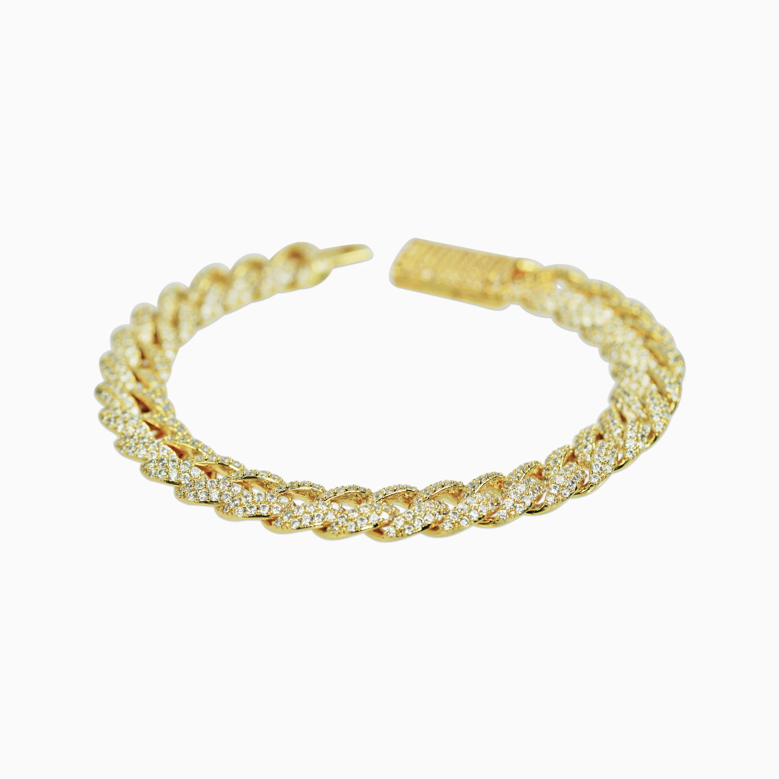 El Brazalete Cubana Ice 10 mm Oro 18K está cubierto de circonitas de alta calidad. Un diseño urbano con toque premium, ideal para destacar sin pasarse.
