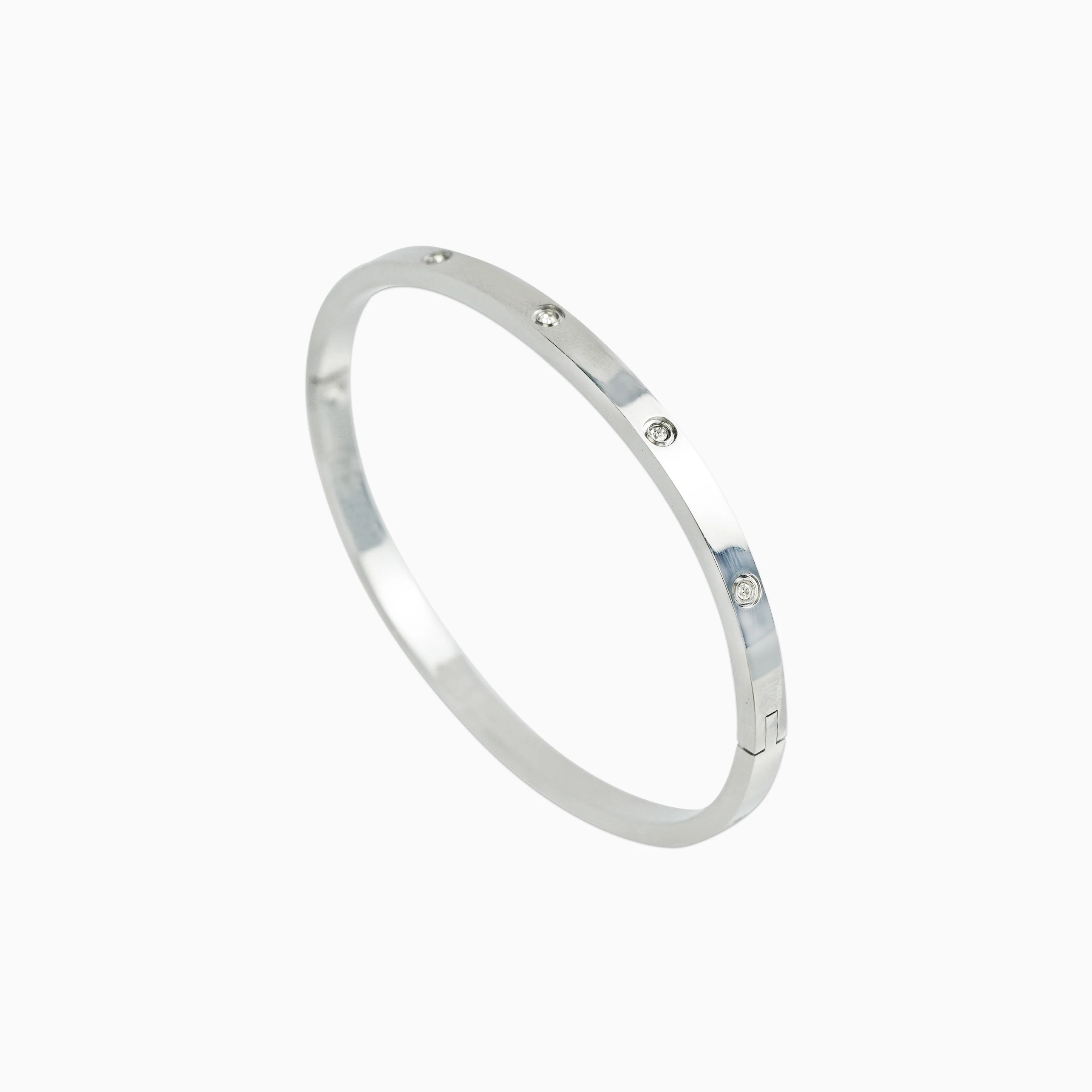 Diseño sobrio, mensaje fuerte. El Brazalete Love Oro Blanco Mujer es perfecto para quienes aman el estilo helado y limpio. Combina con todo.