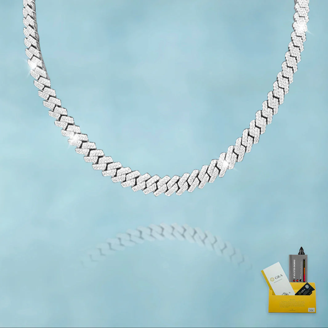 Cadena Cubana Prong 8 Mm VVS Moissanite + Plata 925