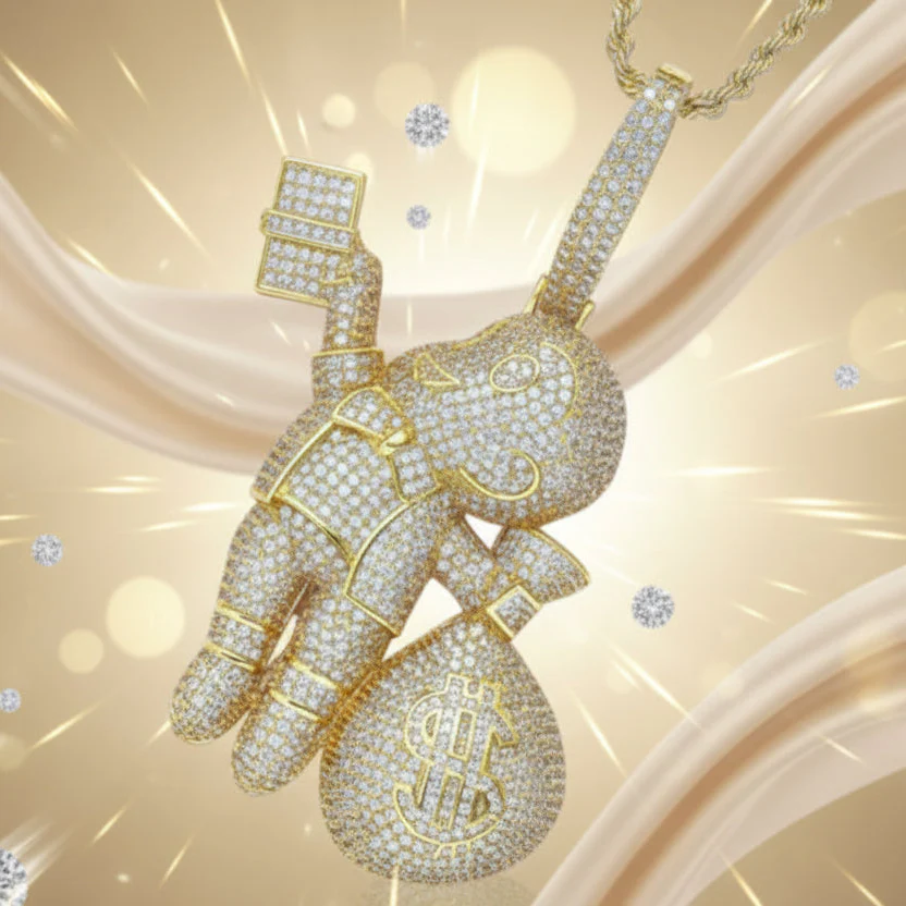 Inspirado en los hustlers de verdad. El Colgante Bag Kid Oro 18K representa la ambición y el grind diario. Si tu meta es llenar la bolsa, esta pieza es para ti.