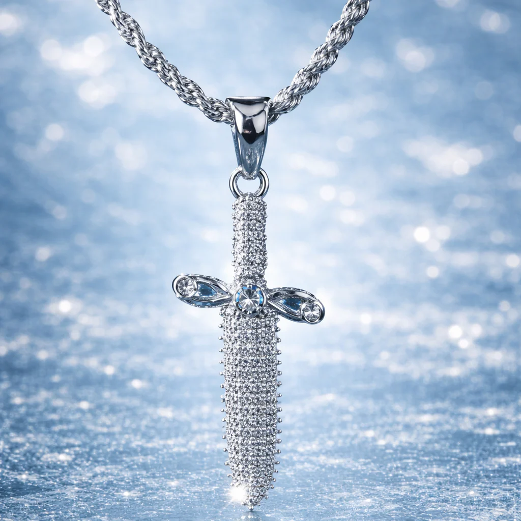 El Colgante Cuchillo Oro Blanco trae la misma energía afilada con acabado blanco. Brillo, actitud y diseño único.