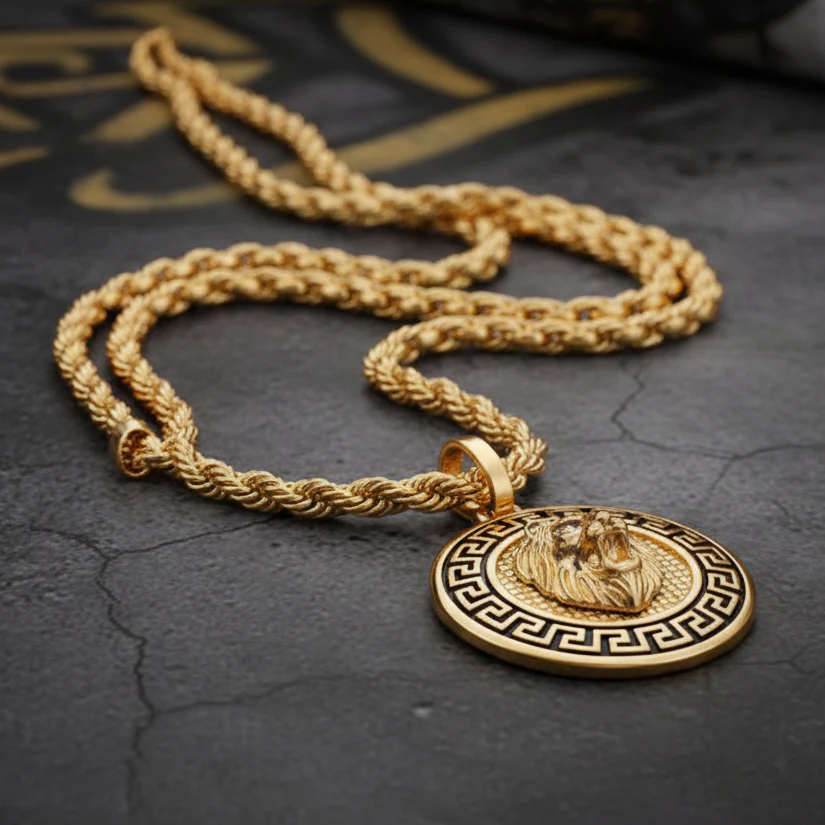 El Colgante Medalla León Oro 18K une fuerza y elegancia en una medalla con relieve detallado. Ideal para quienes tienen espíritu de líder.