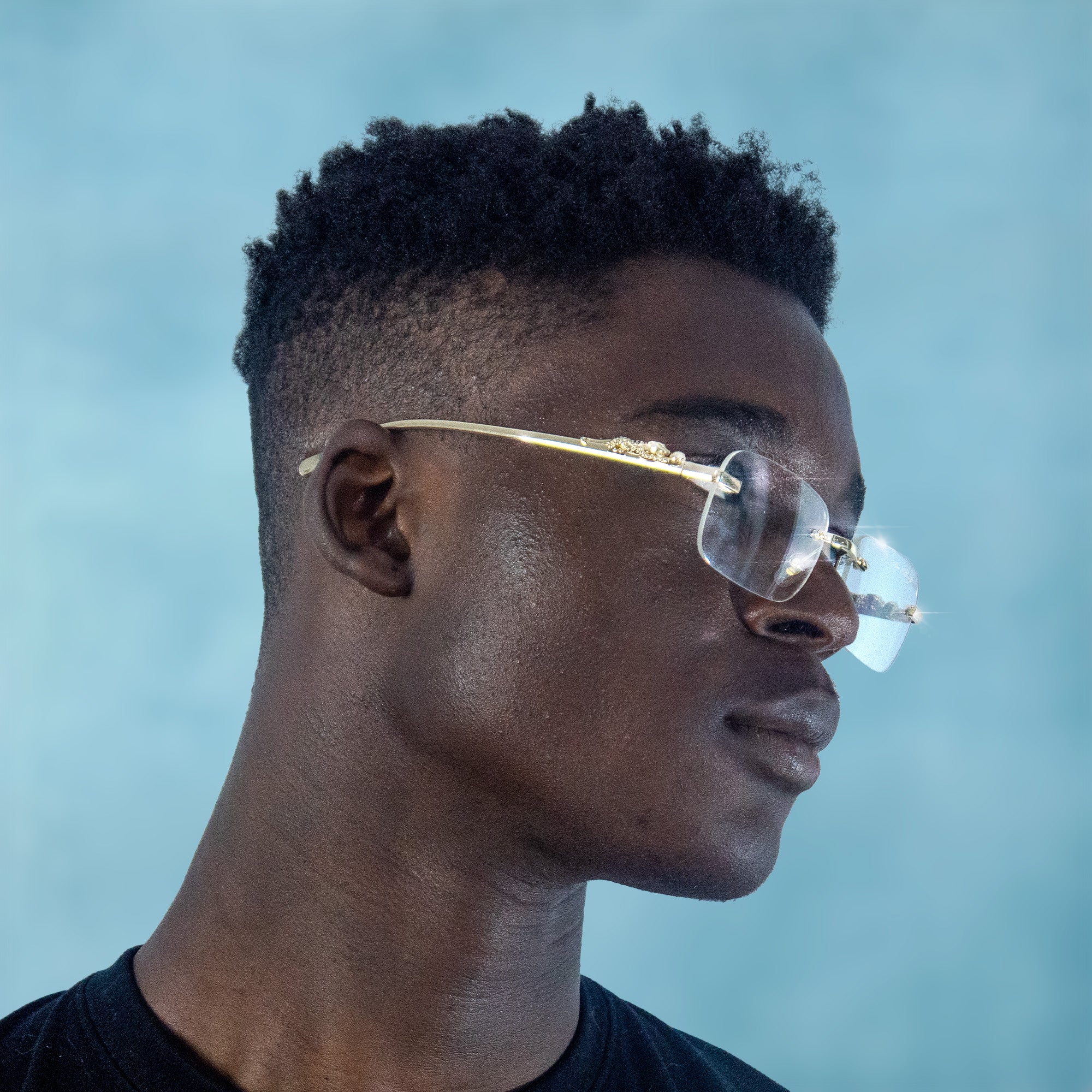 Un modelo que rompe esquemas: sin color, sin límites. Las Gold Jaguar llegan con estructura dorada, varillas talladas con cabezas de jaguar y lentes totalmente transparentes que dejan que hablen por ti.