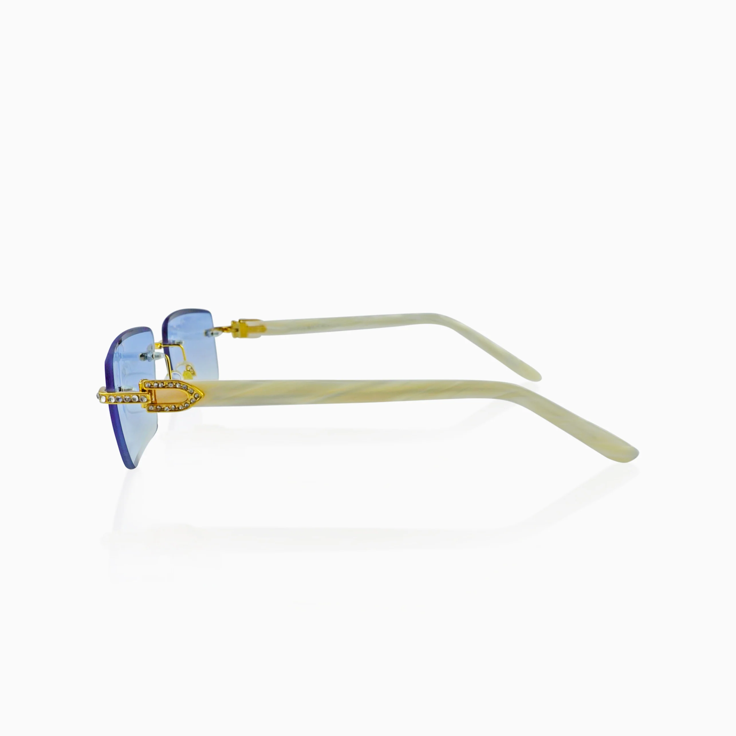 El modelo más exclusivo, ahora con lentes azules translúcidas que reflejan frescura y personalidad. Las Gafas Luxx Ice Blue combinan montura blanca efecto nácar con detalles dorados y circonitas 5A que lo hacen brillar sin esfuerzo.